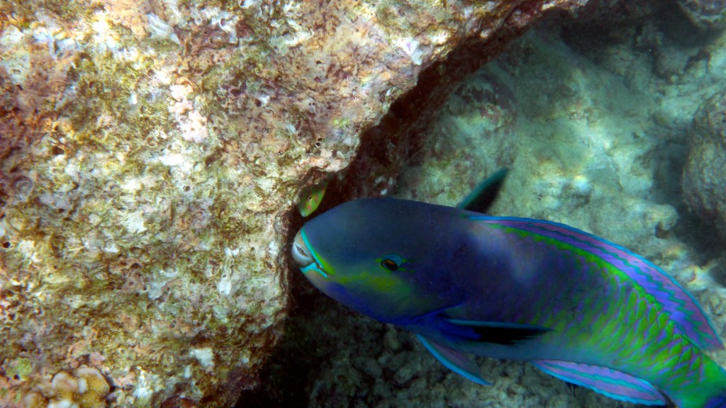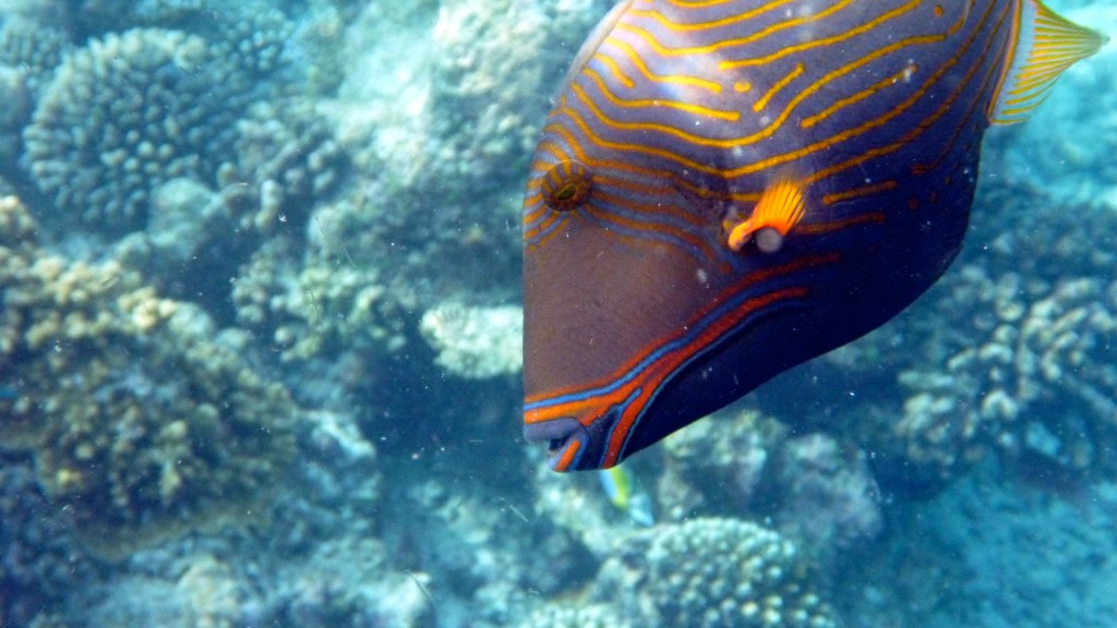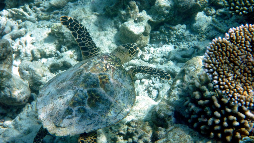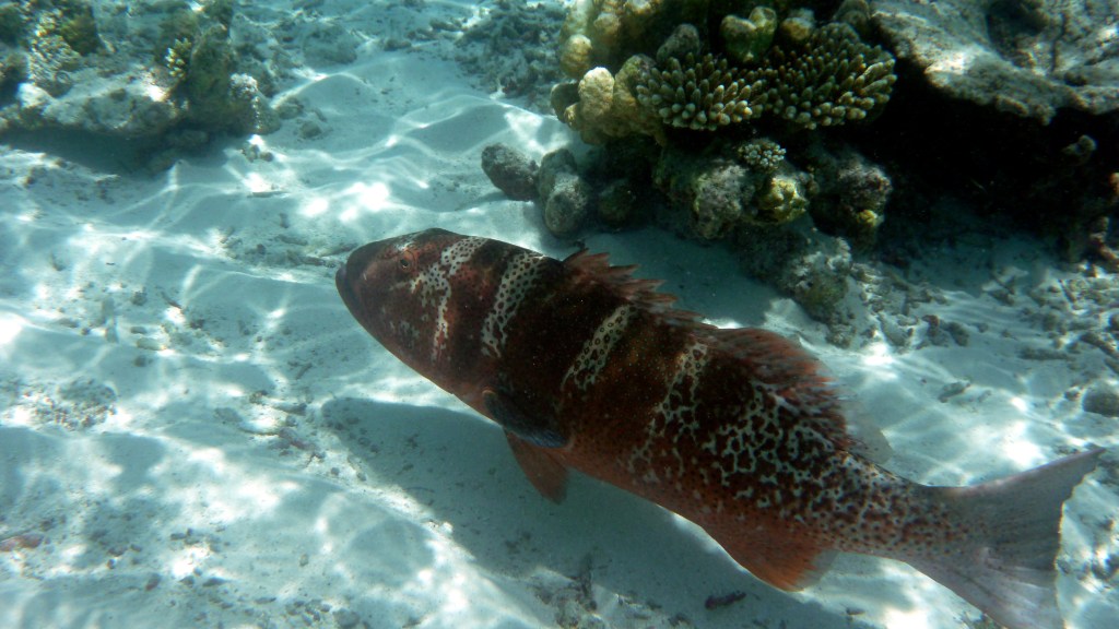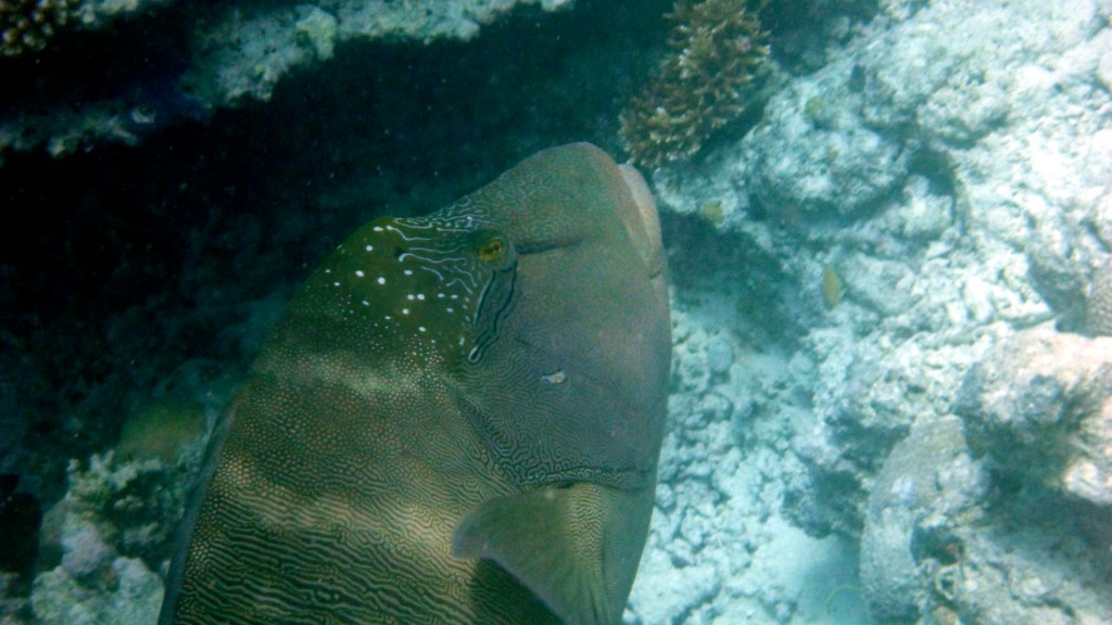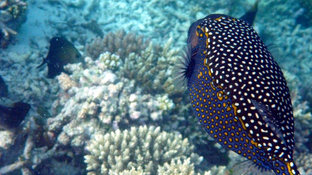 Il reef è splendido: ricco di coralli, soprattutto nella parte sinistra del pontile delle over-water, colorato in molti punti e abitato da migliaia di pesci. È indescrivibile la gioia che si prova nell’essere attorniati da banchi di pesci fucilieri, pappagallo o balestra dai denti rossi: un vortice di colori e di emozioni meravigliosi. È facile vedere tartarughe, murene giganti, pesci pagliaccio e, se si è fortunati come il sottoscritto, pesci napoleone, cernie enormi che cambiano colore, squali pinna nera e pinna bianca, meduse colorate, pesci scatola, seppie variopinte e tanto, tanto altro ancora.