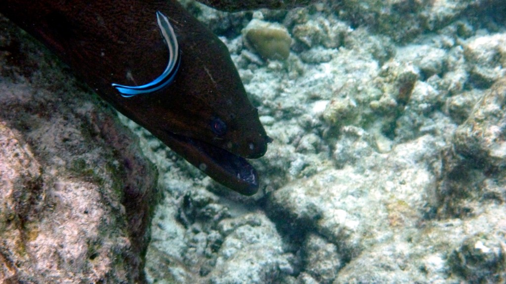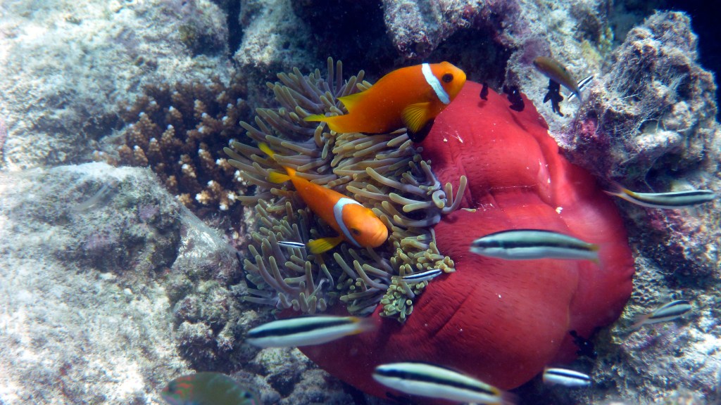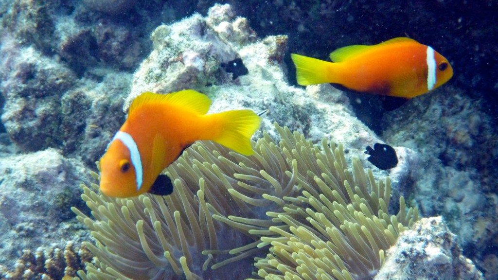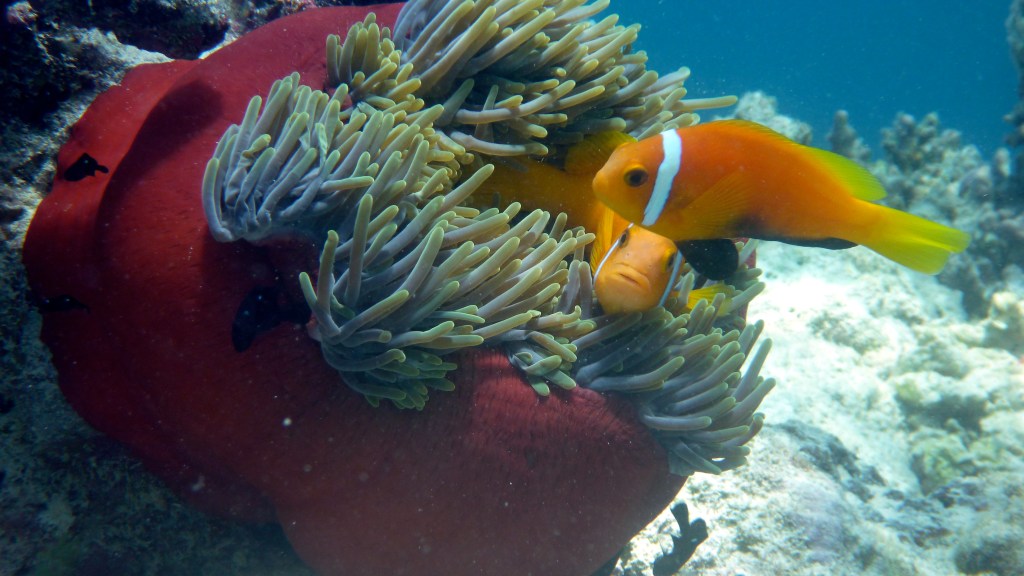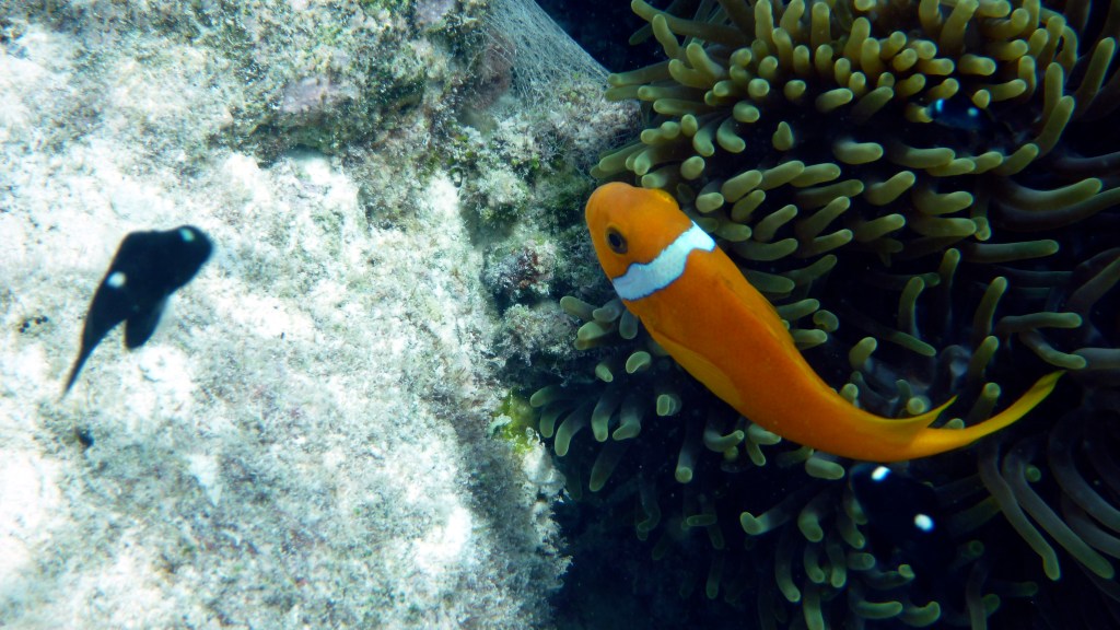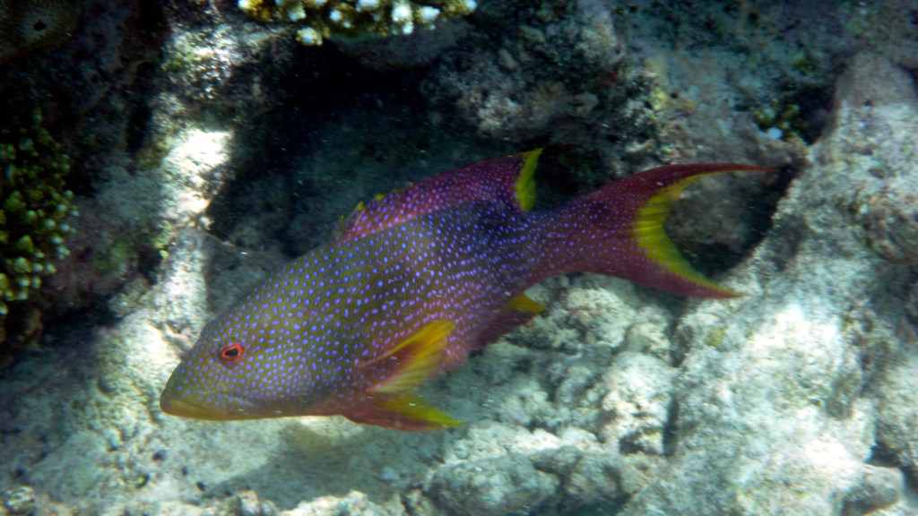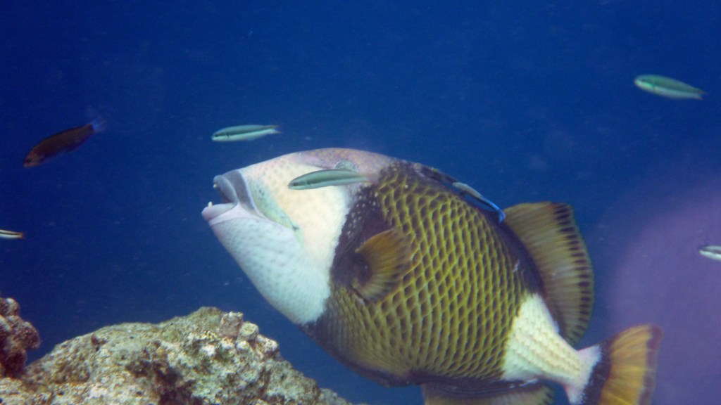 Il reef è splendido: ricco di coralli, soprattutto nella parte sinistra del pontile delle over-water, colorato in molti punti e abitato da migliaia di pesci. È indescrivibile la gioia che si prova nell’essere attorniati da banchi di pesci fucilieri, pappagallo o balestra dai denti rossi: un vortice di colori e di emozioni meravigliosi. È facile vedere tartarughe, murene giganti, pesci pagliaccio e, se si è fortunati come il sottoscritto, pesci napoleone, cernie enormi che cambiano colore, squali pinna nera e pinna bianca, meduse colorate, pesci scatola, seppie variopinte e tanto, tanto altro ancora.